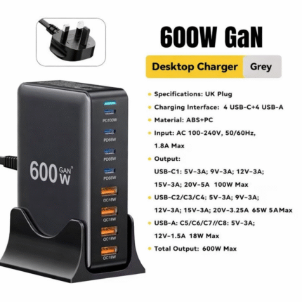 محطة الشحن المكتبية 600W GaN – قوة احترافية بثمانية منافذ