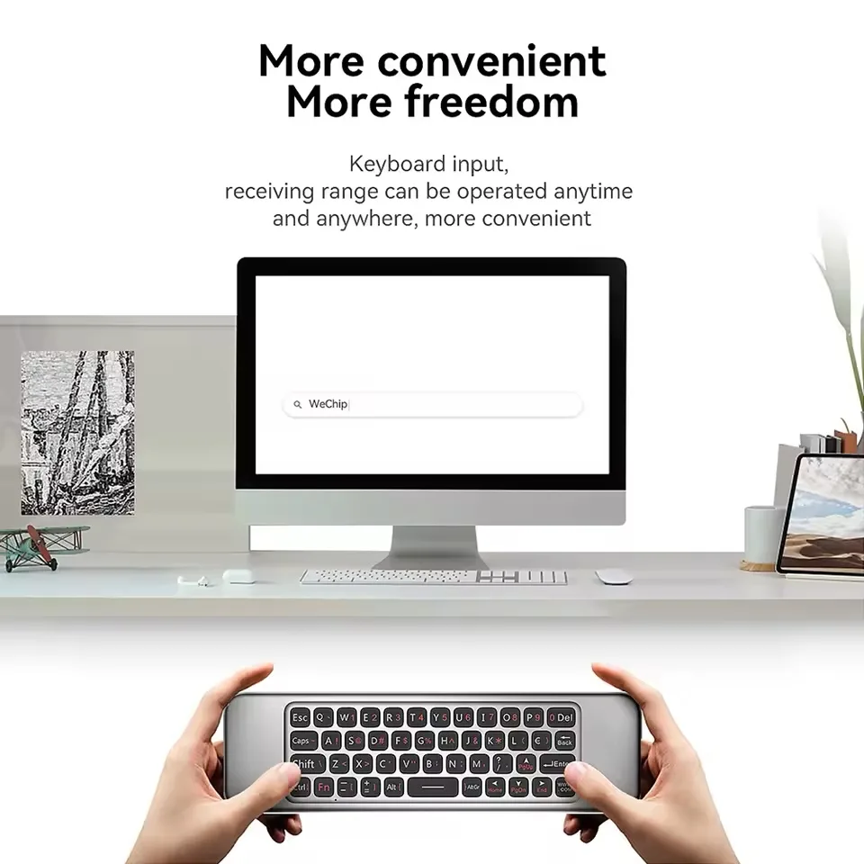 جهاز التحكم عن بعد W3 Air Mouse هو جهاز متعدد الاستخدامات 4 في 1 يعمل كجهاز تحكم عن بعد وماوس هوائي ولوحة مفاتيح لاسلكية ولوحة ألعاب الميزات الرئيسية: ‣ جهاز متعدد الوظائف: يجمع بين وظائف جهاز التحكم عن بعد والماوس الهوائي ولوحة المفاتيح اللاسلكية ولوحة الألعاب. ‣ توافق واسع: يدعم أجهزة Mac وWindows وصناديق Android TV وأجهزة الكمبيوتر وأجهزة العرض. ‣ تصميم مريح: نحيف وخفيف الوزن لسهولة التعامل. المواصفات الفنية: ‣ البطارية: بطارية ليثيوم أيون قابلة لإعادة الشحن. ‣ الأبعاد: 0.98 × 1.73 × 0.36 بوصة. ‣ الوزن: 3.2 أونصة