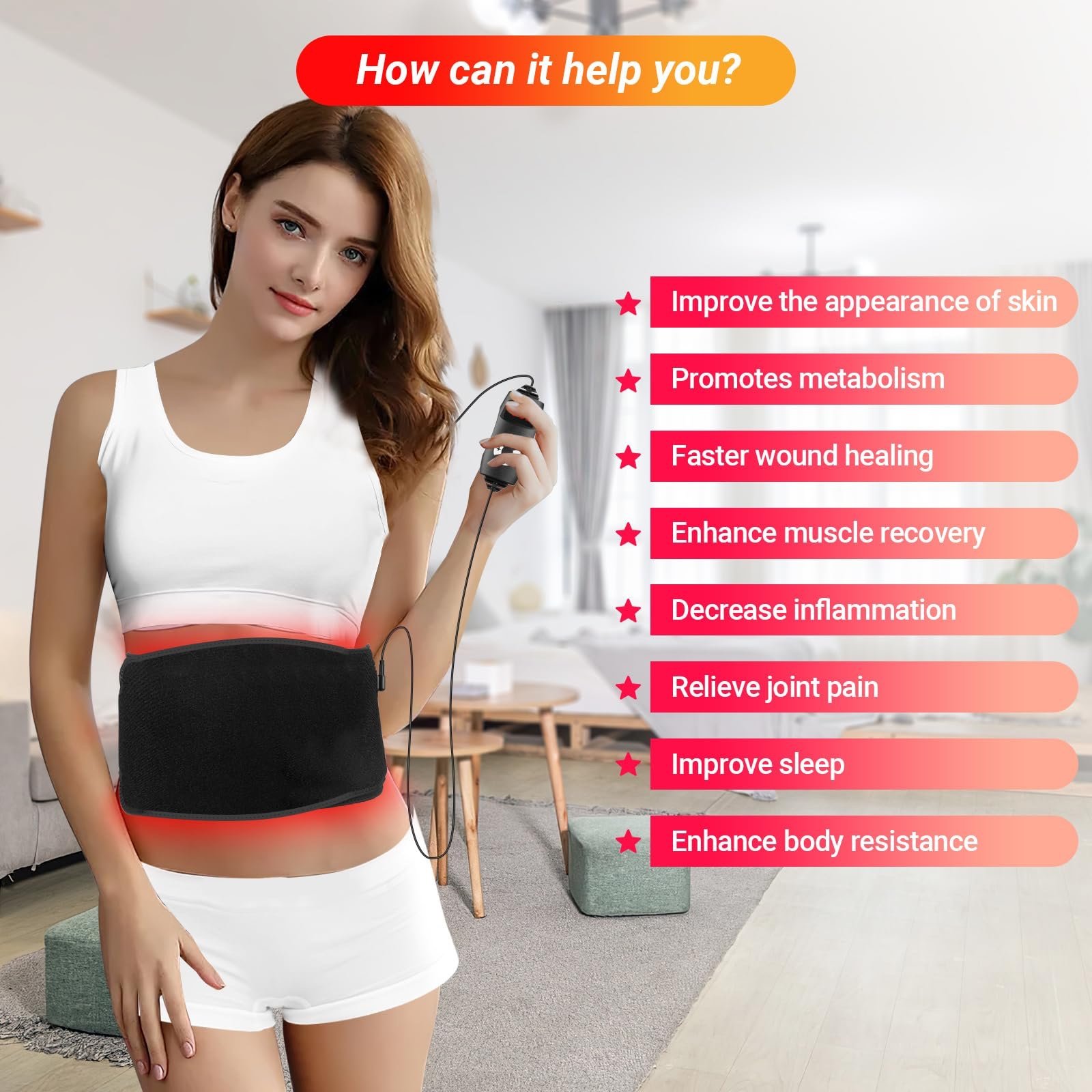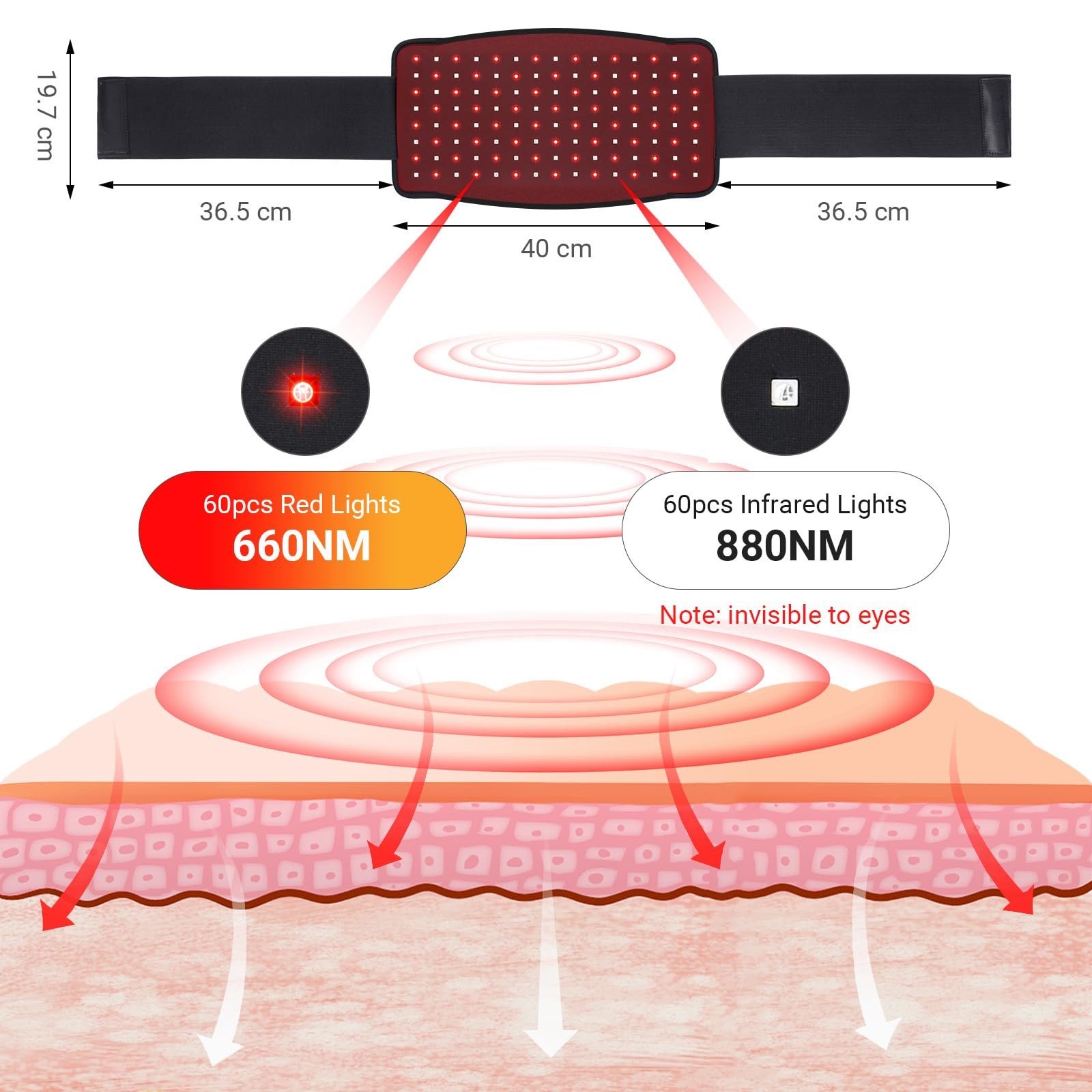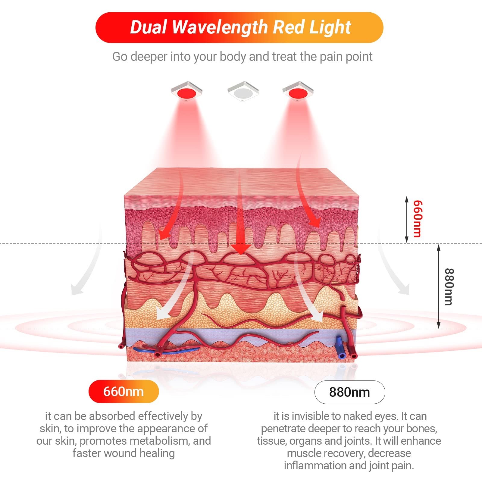 يجمع بين ضوء أحمر 660 نانومتر وأشعة تحت حمراء 880 نانومتر لاختراق أعمق للأنسجة، دعم تنشيط الدورة الدموية، والمساعدة في تهدئة الألم العضلي.