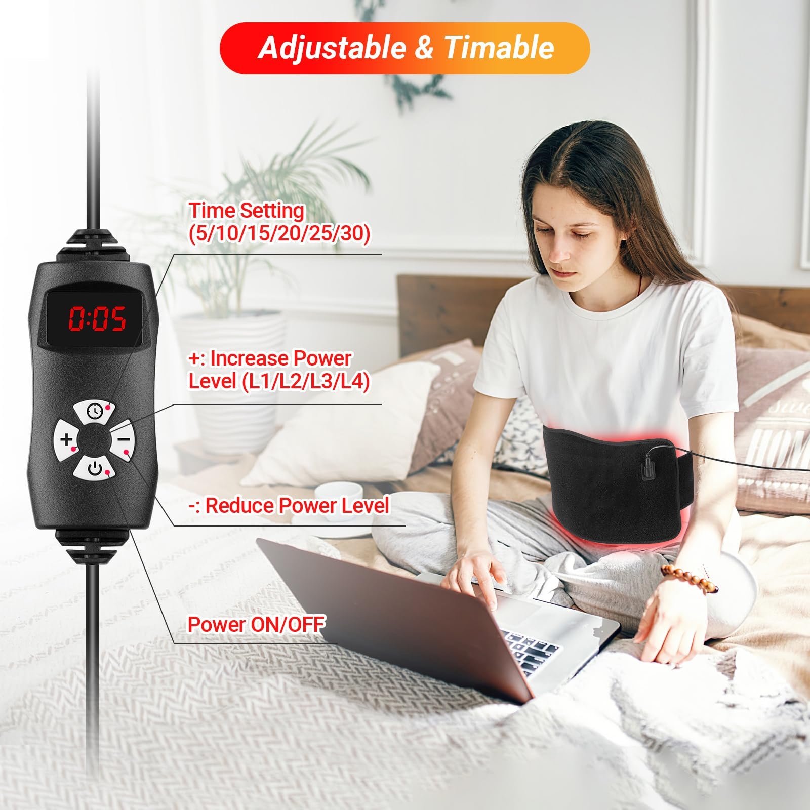 مزود بحزام فيلكرو قابل للتعديل يثبت بسهولة على الظهر، الكتف، الرقبة، الذراع، الركبة، أو أي منطقة تحتاج علاجًا مباشرًا.