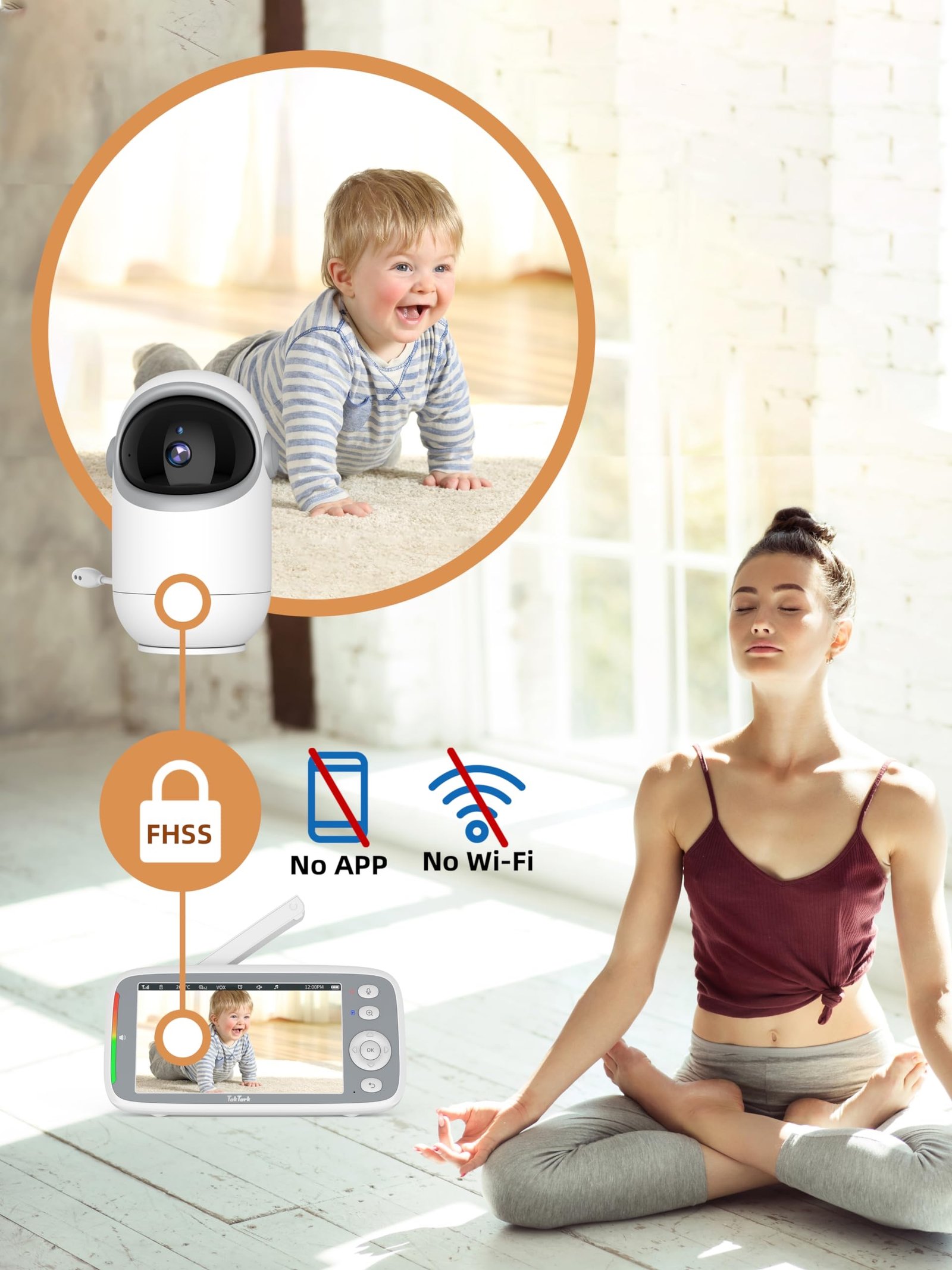 جهاز مراقبة الأطفال TakTark – كاميرا 5 بوصة عالية الدقة 720p مع تحريك وإمالة وصوت ثنائي الاتجاه