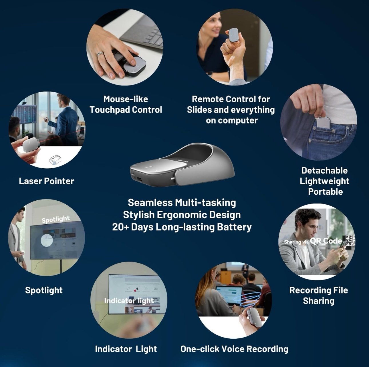 تحكّم بالعروض التقديمية والكمبيوتر والموبايل من أي مكان في الغرفة.