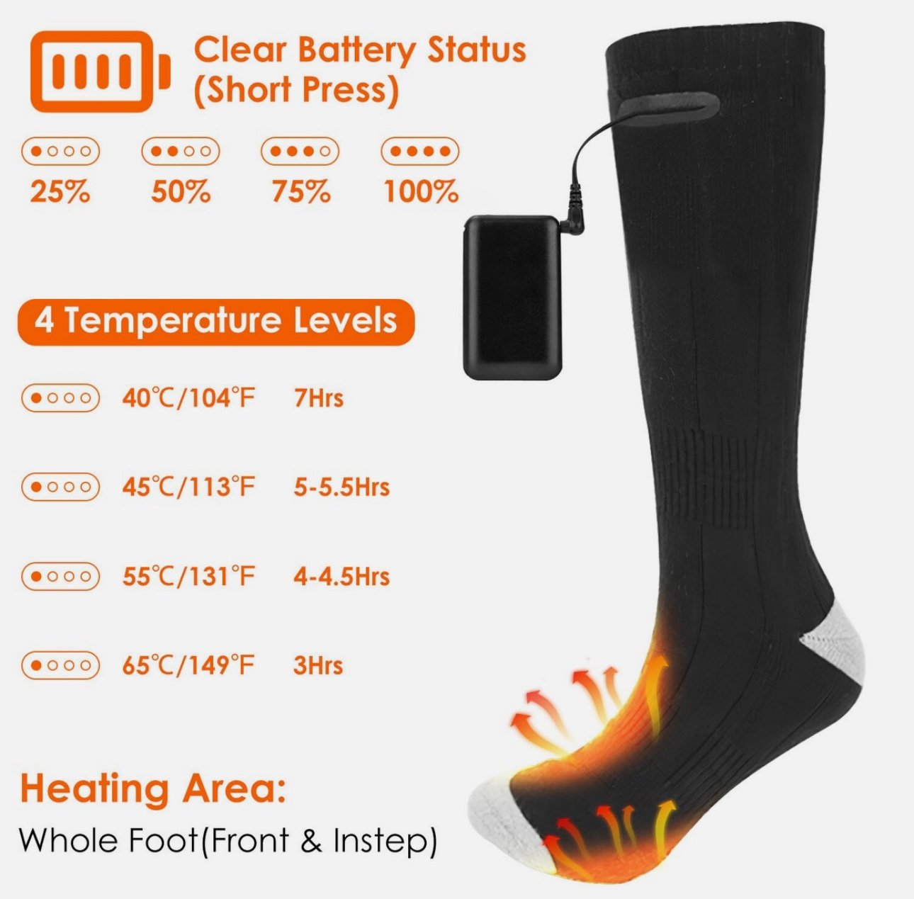 • تصميم تسخين غير مرئي يغطي أصابع القدم بالكامل لراحة ودفء مثالي.