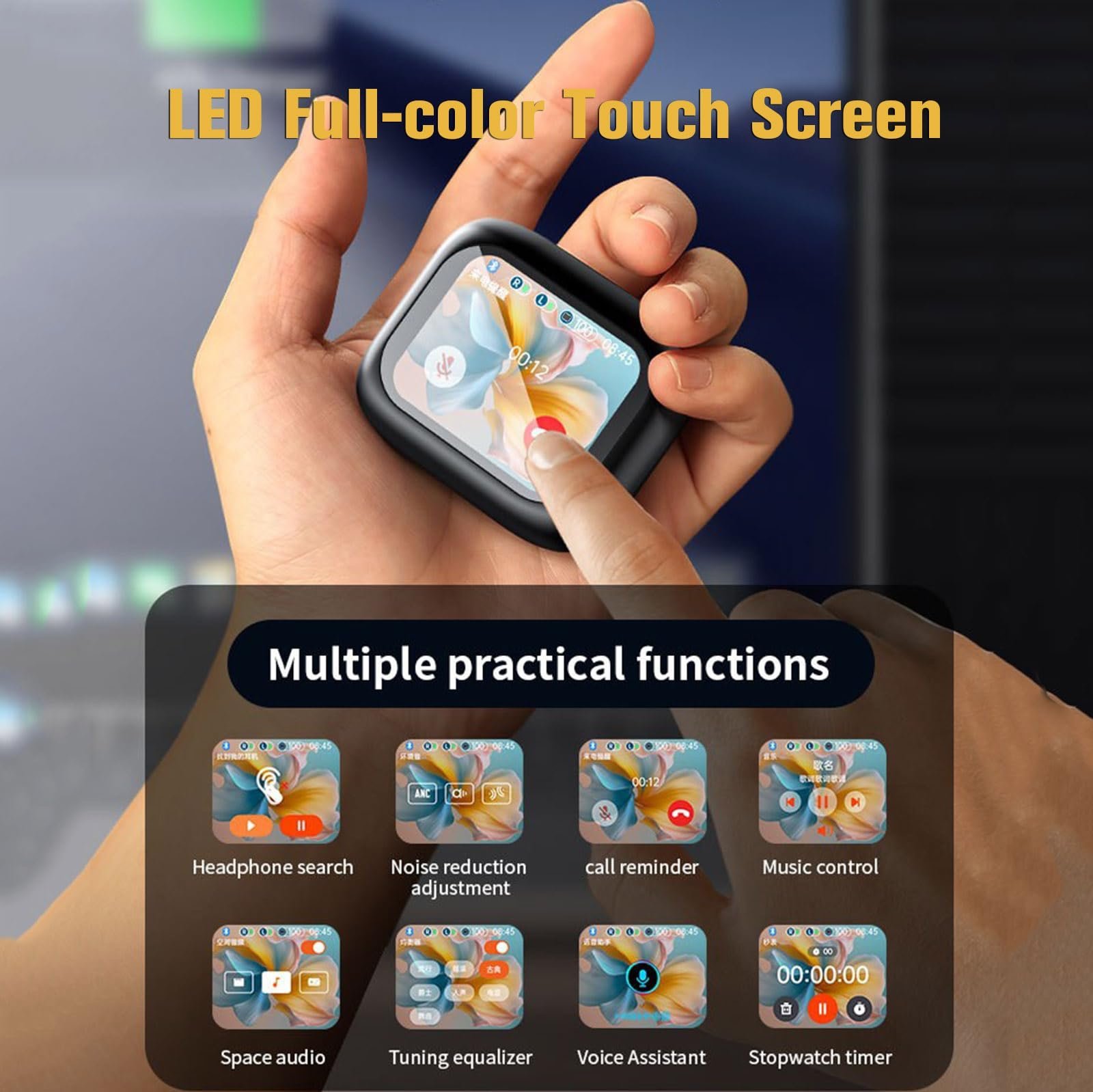 سماعات TTPISM اللاسلكية بإلغاء الضوضاء النشطة ANC – شاشة لمس ذكية ووضع الشفافية