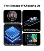 • 🔥 هيكل معدني فاخر: غلاف من سبائك الألومنيوم عالية الكثافة يضمن تبديد حرارة فعال وكفاءة شحن أعلى بنسبة 15% مقارنة بالشواحن البلاستيكية.