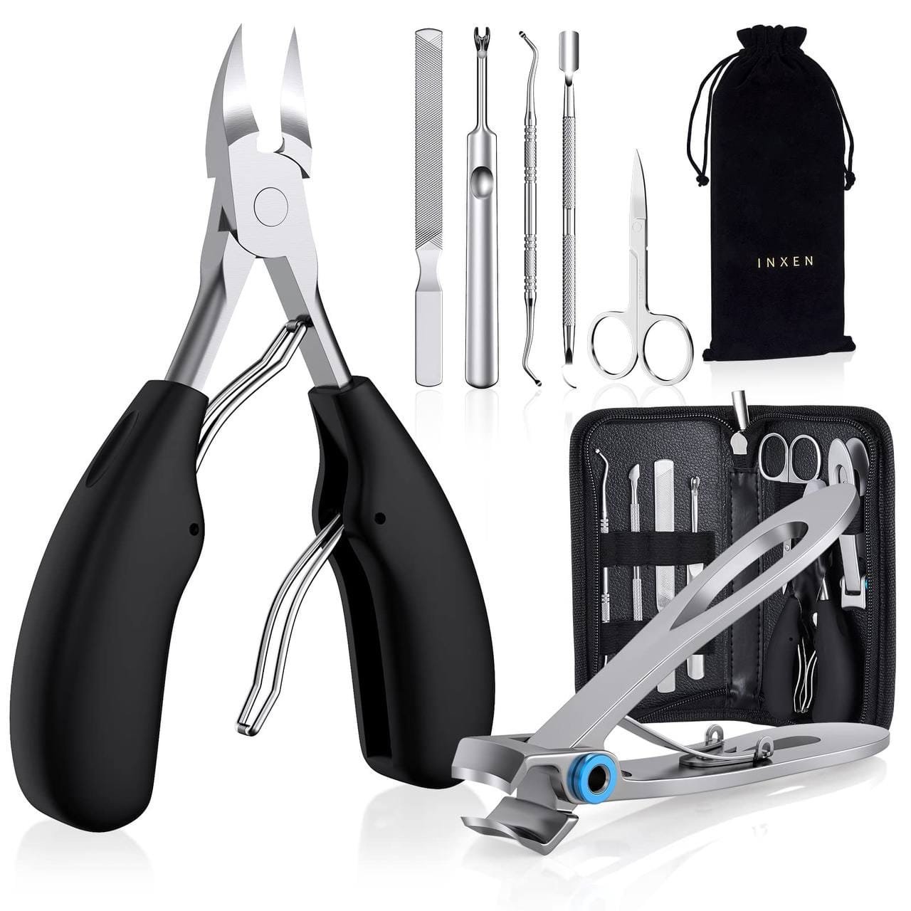 عدة ماناكير للعناية بالاظافر من ماركة INXEN متكونة من 7 قطع بجودة عالية مصنوعة من الفولاذ المقاوم للصدء