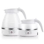 مادة سيليكون عالية الجودة غلاية قابلة للطي مصنوعة من سيليكون صالح للطعام. قاعدة غلاية من الفولاذ المقاوم للصدأ 304 مع جسم سيليكون مقاوم للحرارة ومقبض بلاستيكي. خفيفة الوزن ولكنها قوية وآمنة وقادرة على تحمل درجات الحرارة العالية والحفاظ على الاستقرار الهيكلي حتى في الظروف الحارة جدًا. غلاية السفر خالية من مادة BPA. كما نقدم كوبين قابلين للطي لجعل الشرب أكثر ملاءمة