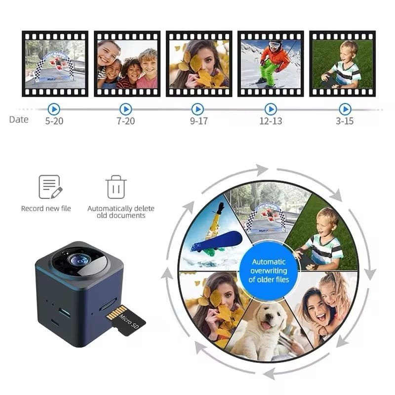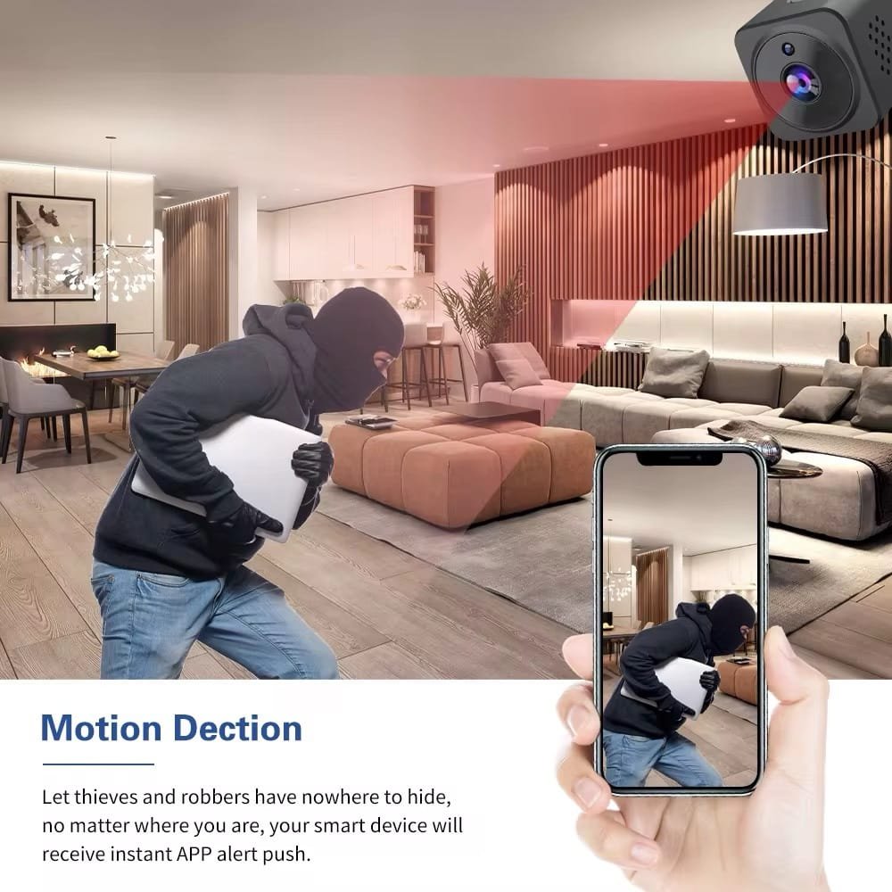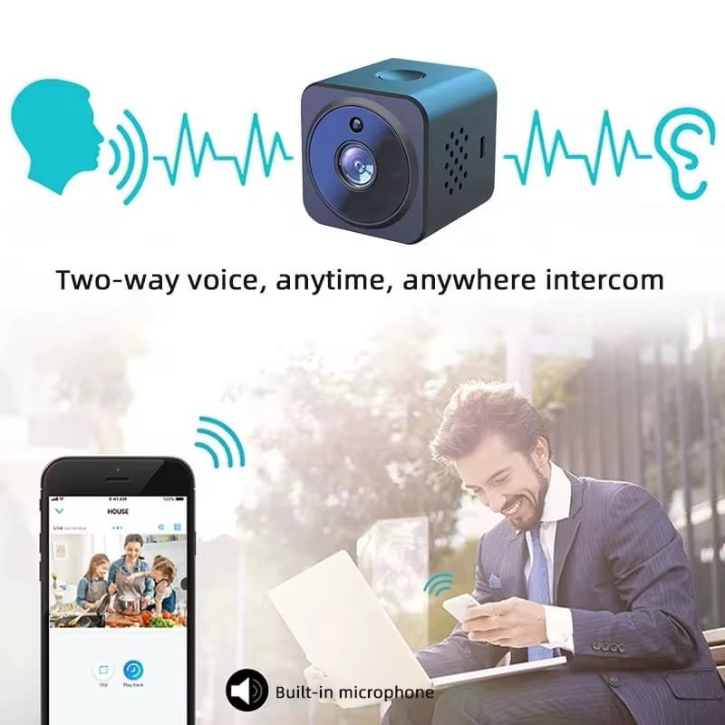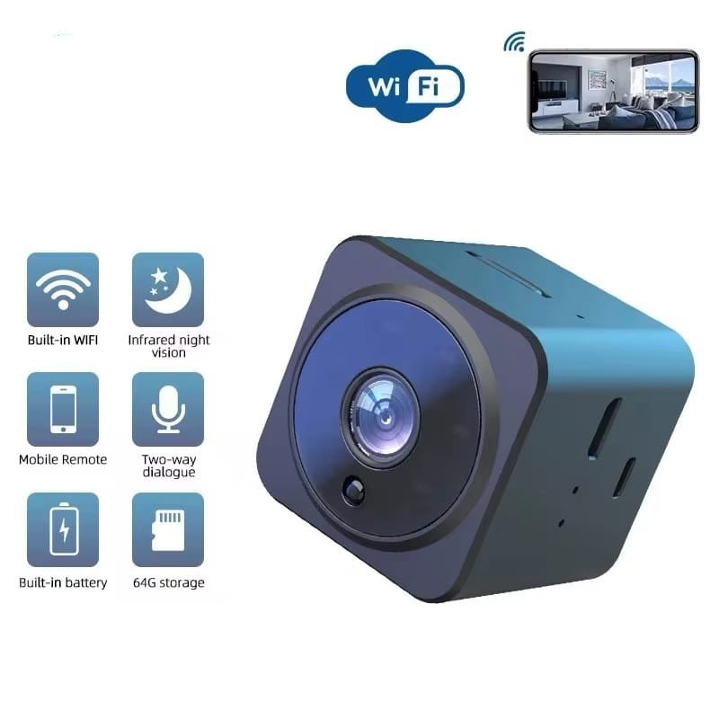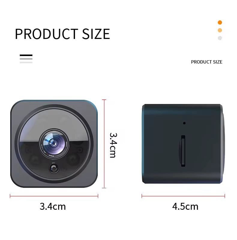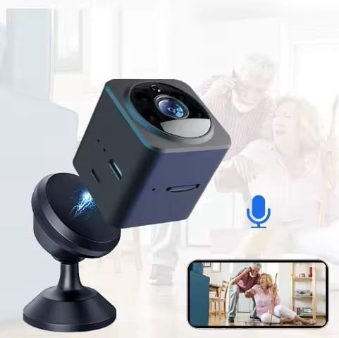 “كامرة مراقبة واي فاي صغيرة، تخليك تراقب بيتك أو مكتبك من أي مكان بالعالم. بيها رؤية ليلية بالأشعة تحت الحمراء، ومايكرفون ثنائي الاتجاه حتى تحجي وتسمع بوضوح. بطاريتها مبنية بداخلها، وتدعم كارت ذاكرة 64GB حتى تخزن التسجيلات. تشتغل على الموبايل بالتحكم عن بعد، وتوصيلها سهل بدون أسلاك زايدة. الحل الأمثل للمراقبة الذكية!”