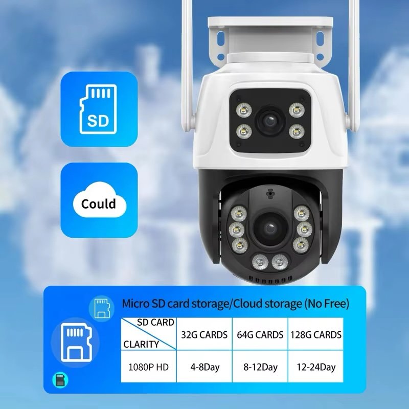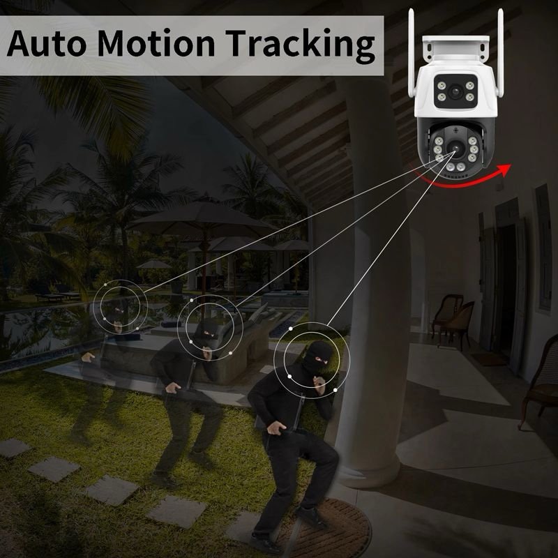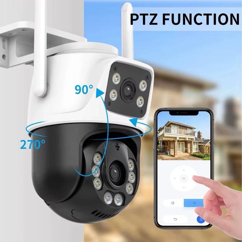 • عدسة مزدوجة (ثابتة + متحركة PTZ) لتغطية مساحة أوسع بدون نقاط عمياء