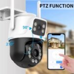 كاميرا مراقبة P6S QQ6 بدقة فول اج دي مع واي فاي ورؤية ليلية ملونة – عدسة مزدوجة PTZ مقاومة للماء IP66