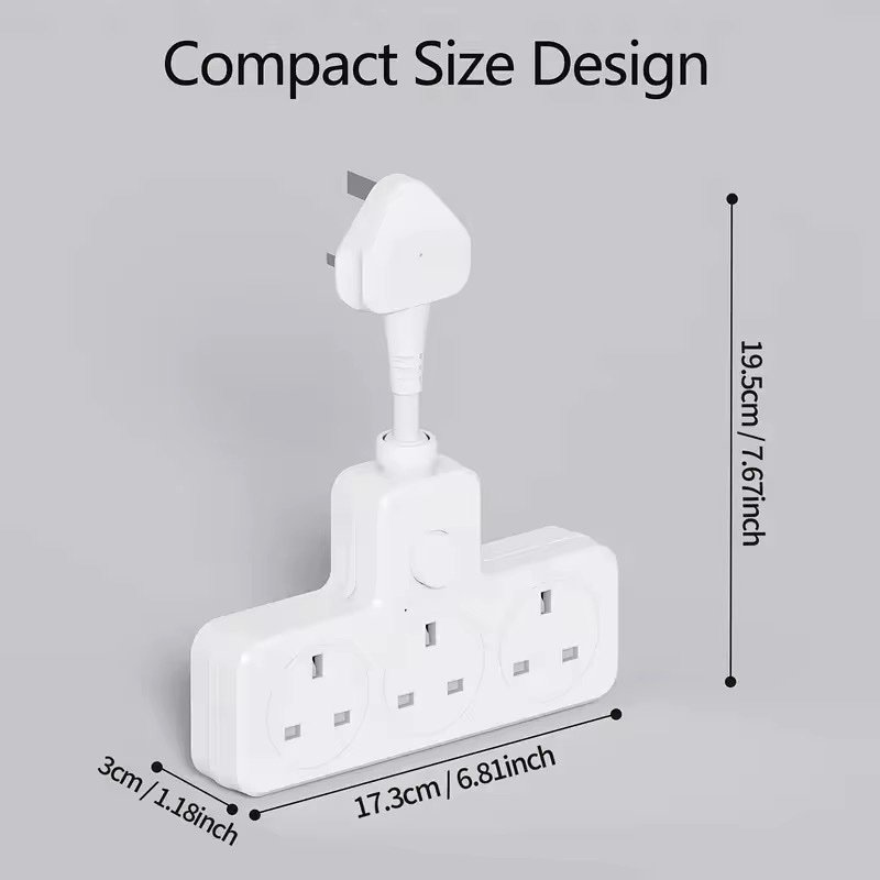 محول طاقة بريطاني عملي بثلاثة مخارج يتيح لك تشغيل عدة أجهزة في وقت واحد بأمان وكفاءة، مصمم لتحمل الأحمال العالية ومناسب للاستخدام اليومي في المنزل أو المكتب.