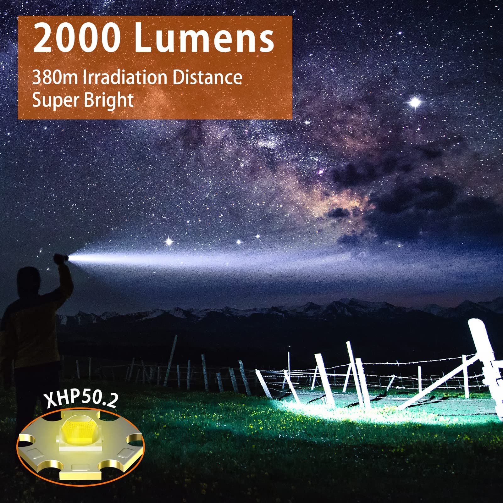 • سطوع قوي 2000 لومن يوفر رؤية واضحة لمسافات تصل إلى 380 متر