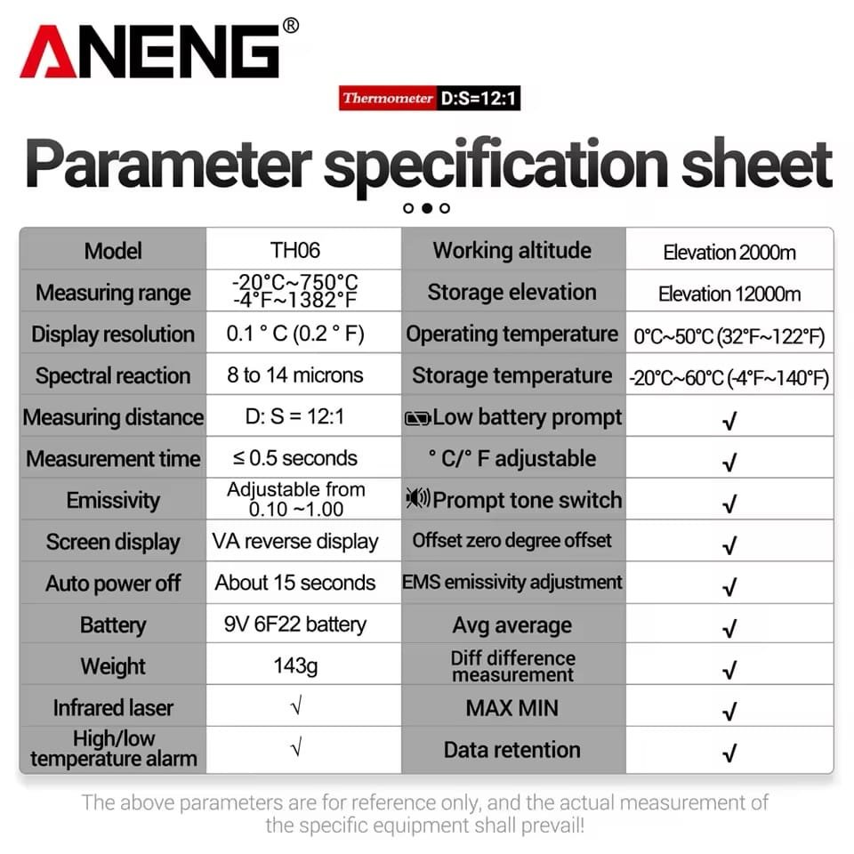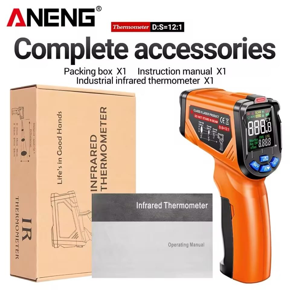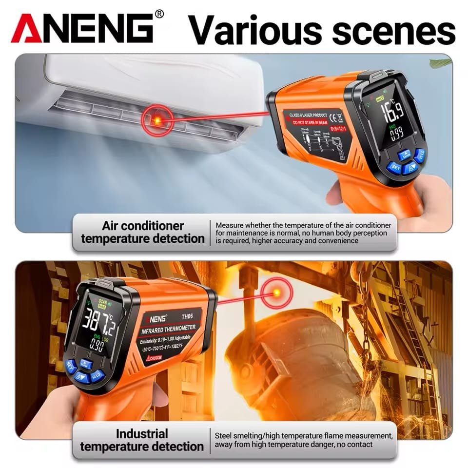 مقياس حرارة رقمي بالأشعة تحت الحمراء ANENG TH06 – قياس دقيق وسريع لدرجات الحرارة من -20 حتى 750°C بدون تلامس