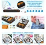 شاشة فائقة الوضوح: شاشة LCD كبيرة تعرض الضوء البرتقالي الخلفي، شاشة رقمية واضحة وسهلة القراءة؛ غطاء واقٍ شفاف مقاوم للغبار والرياح، قياس أكثر دقة