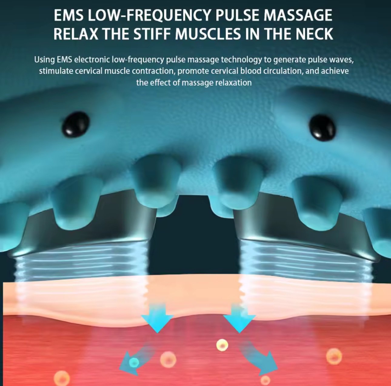 • تقنية EMS متقدمة: تحفيز عضلي كهربائي يساعد على تخفيف التوتر في عضلات الرقبة والعمود الفقري العنقي لراحة أسرع وفعالية أعلى.