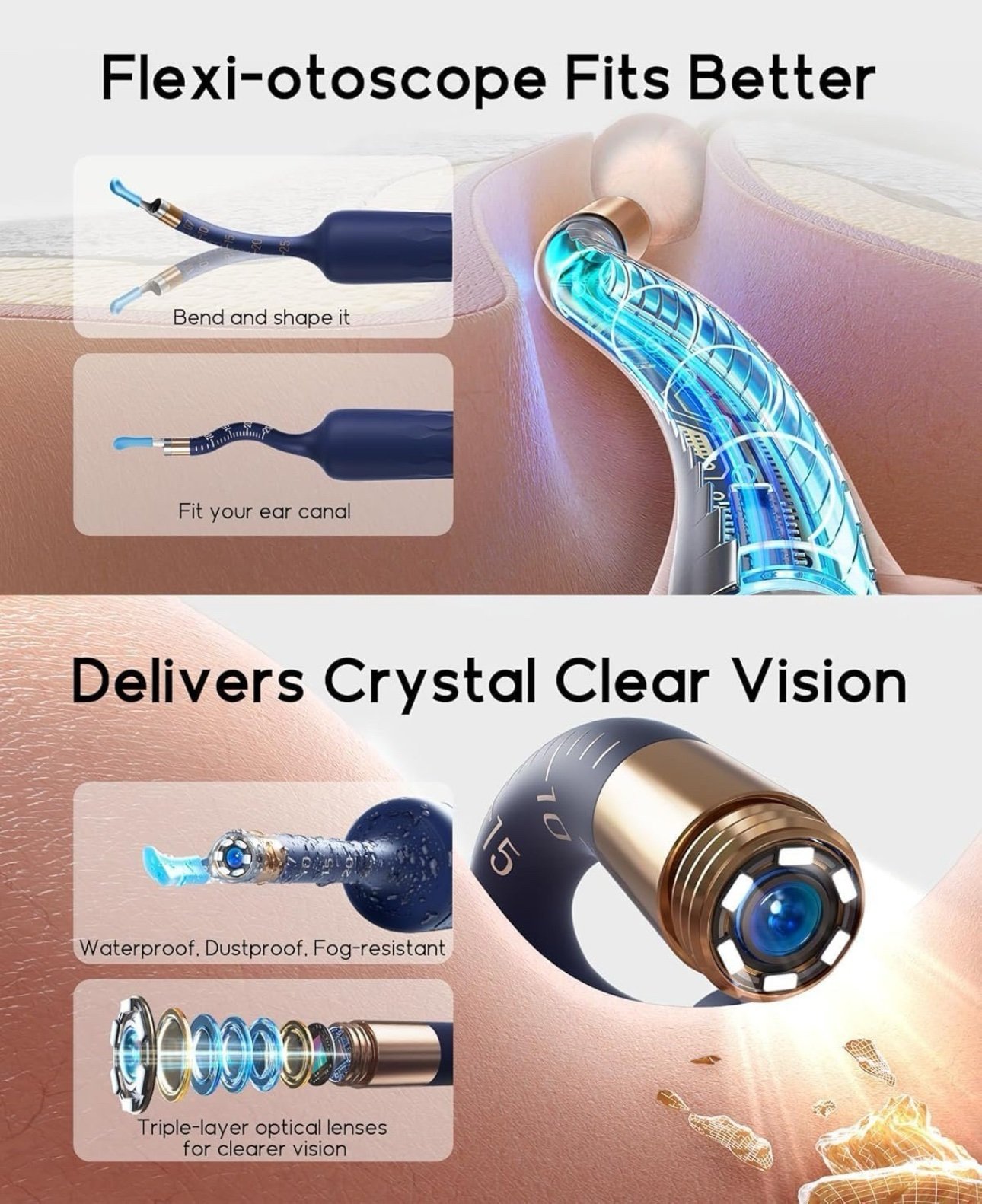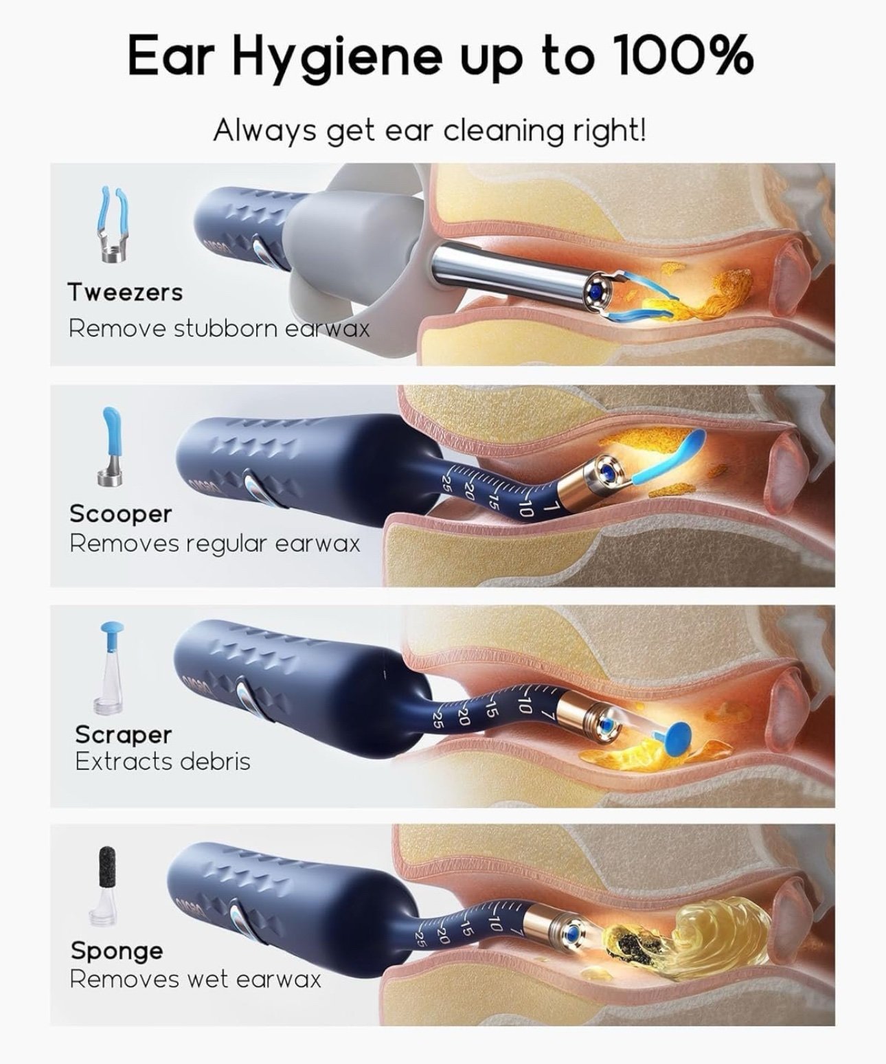 تتيح لك رؤية الأذن من الداخل بدقة تصل إلى 1080p، مما يساعدك على التنظيف بدقة وأمان.