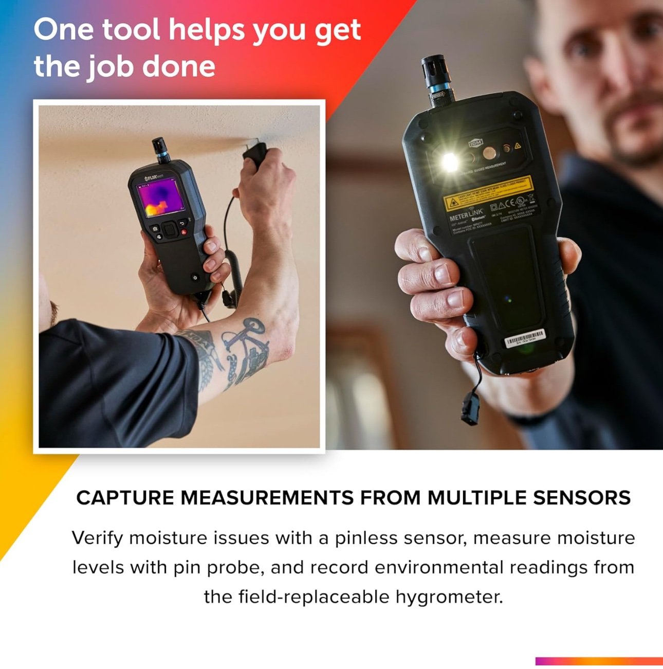 • كاميرا متقدمة من FLIR تجمع بين التصوير الحراري ومقياس الرطوبة في جهاز واحد لفحص المباني بدقة عالية.