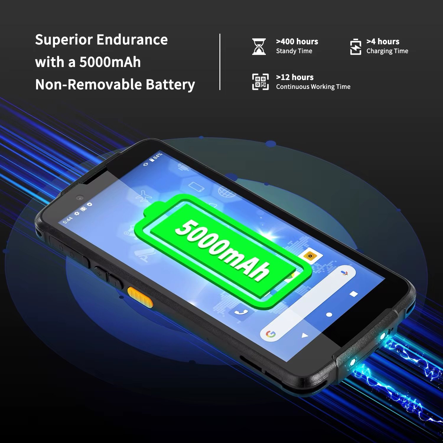 • بطارية طويلة العمر: بطارية 5000mAh تضمن تشغيلًا يصل إلى 12 ساعة عمل متواصل لتقليل فترات التوقف.