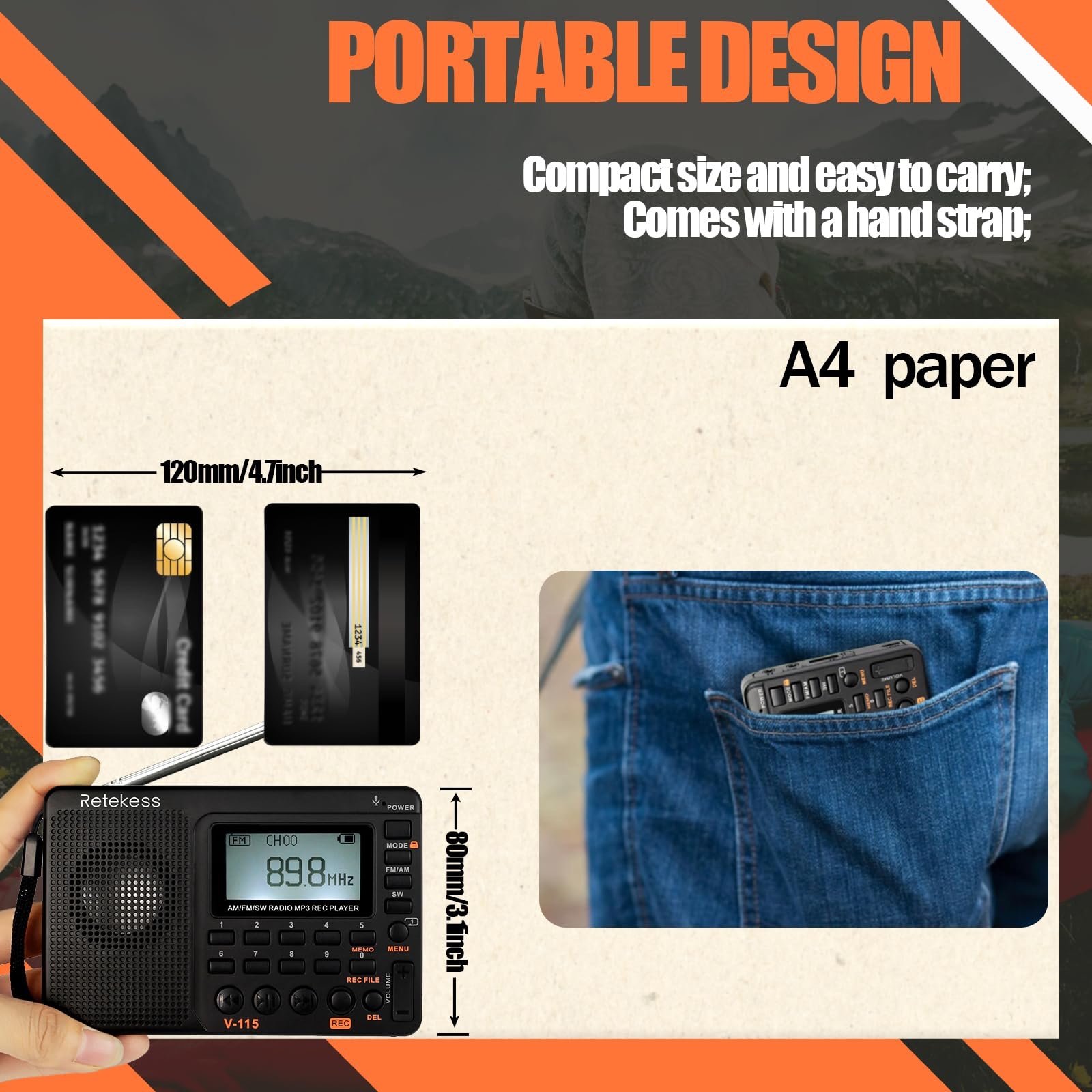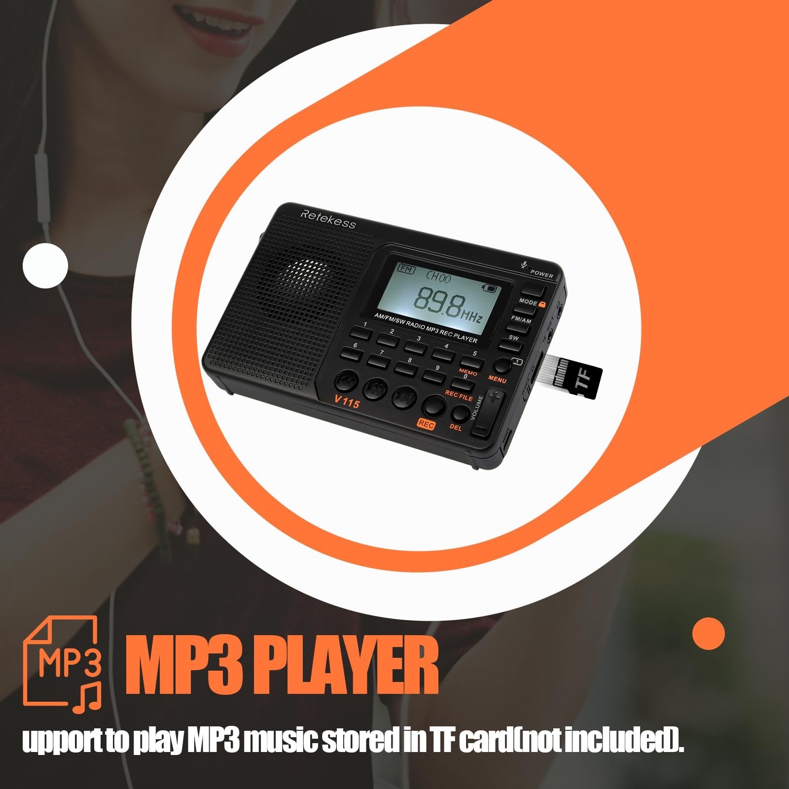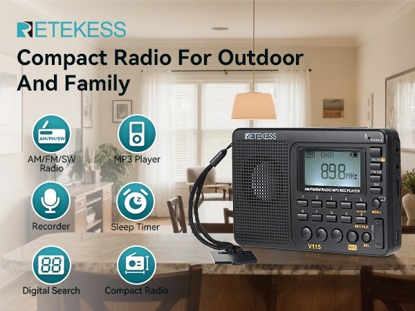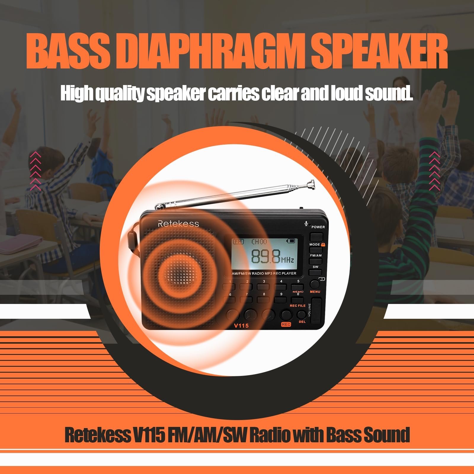 Retekess V115 – راديو رقمي متعدد الموجات مع تسجيل وتشغيل MP3