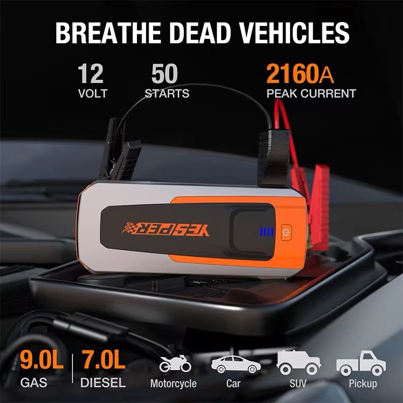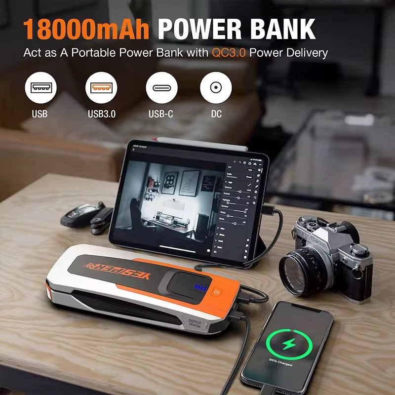 YESPER FASTⅡ جطل السيارة المحمول 2160A – باور بانك ذكي 4×1 مع شحن سريع QC3.0
